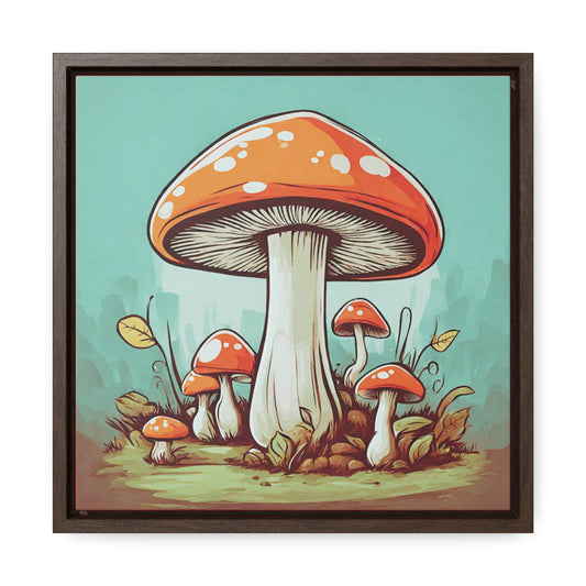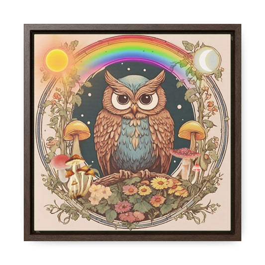 Vintage Blue Owl and Mushroom Gallery Canvas Wraps, Square Frame