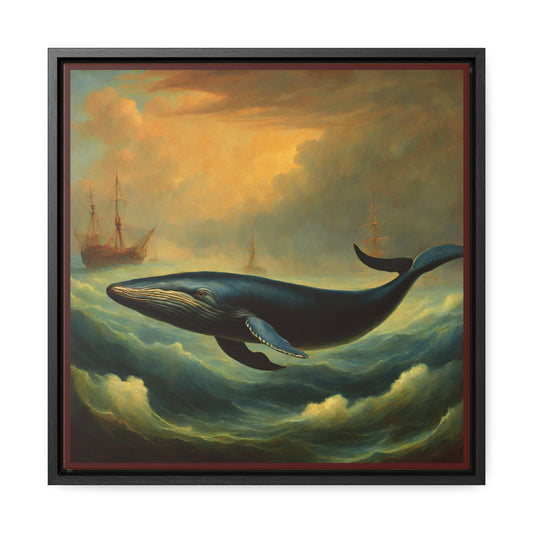 Vintage Blue Whale Nautical Gallery Canvas Wraps, Square Frame