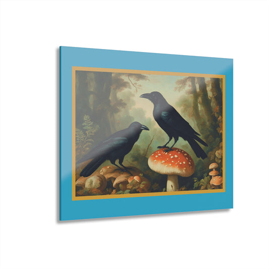 Vintage Crow and Mushroom Cottage Woods Acrylic Prints (French Cleat Hanging)